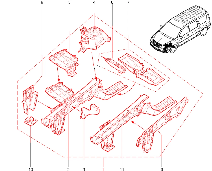 Штатный оригинальный брызговик с лонжероном левый в сборе (ДВС ВАЗ) для Lada Largus.