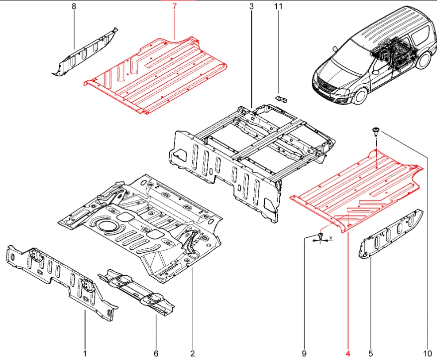 Штатная оригинальная панель пола для Lada Largus фургон.