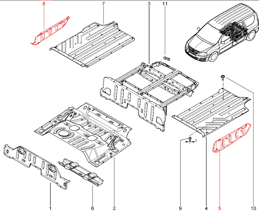 Штатный оригинальный фланец пола для Lada Largus фургон.