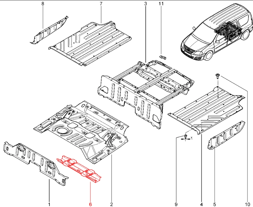 Штатная оригинальная поперечина задняя для Lada Largus.