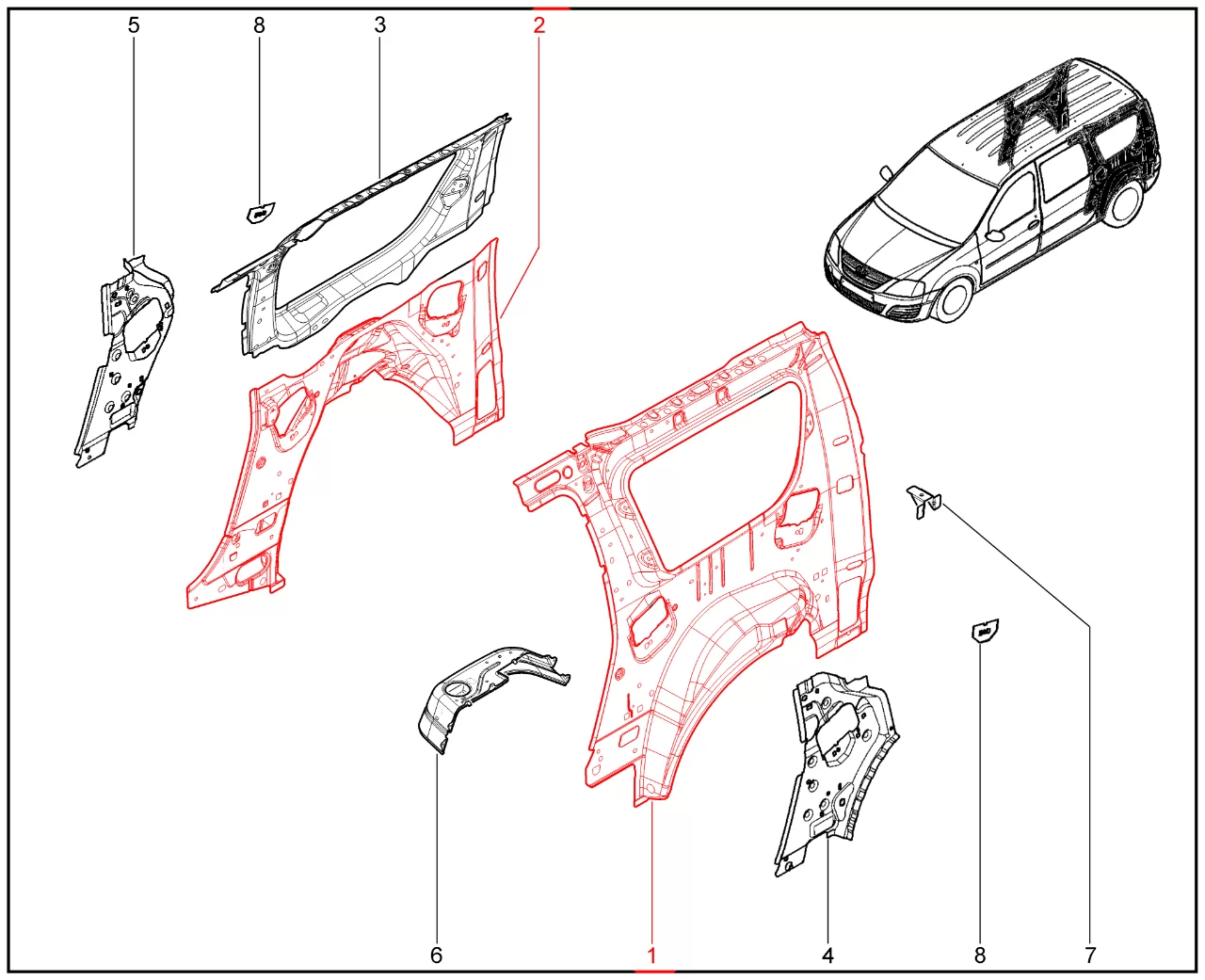 Штатная оригинальная панель задней стойки для Lada Largus универсал.
