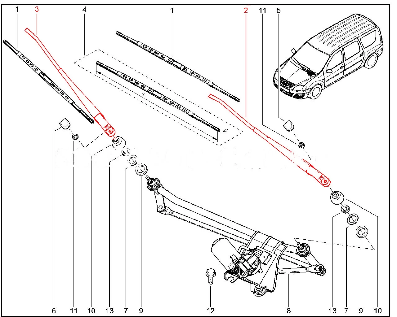 Штатный оригинальный рычаг стеклоочистителя для Lada Largus.