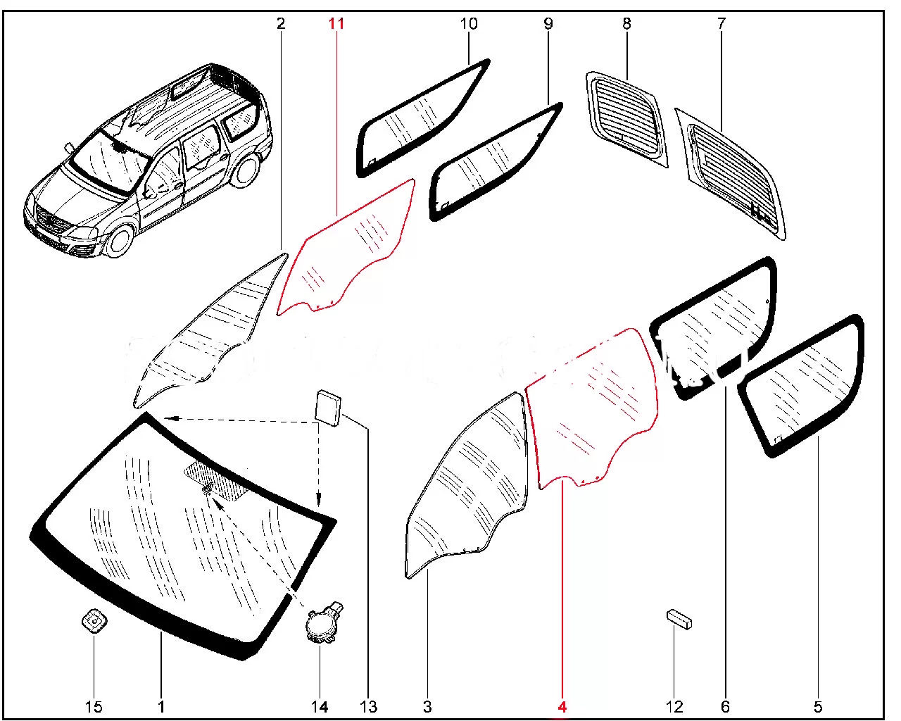 Штатное оригинальное стекло опускное задней двери (глубокая тонировка) для Lada Largus.
