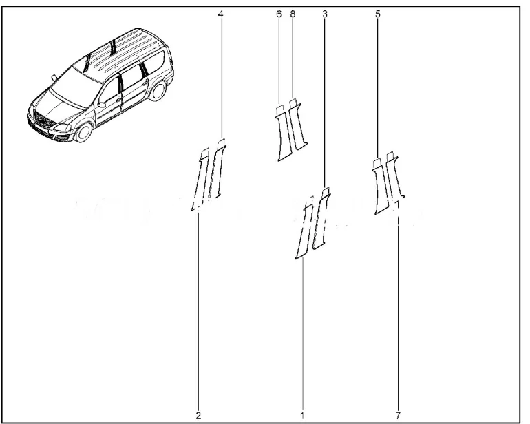 Наклейки рамок дверей (черный матовый) самоклеющиеся Лада Ларгус.