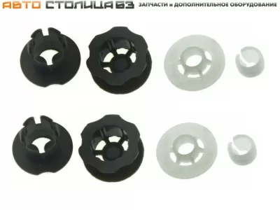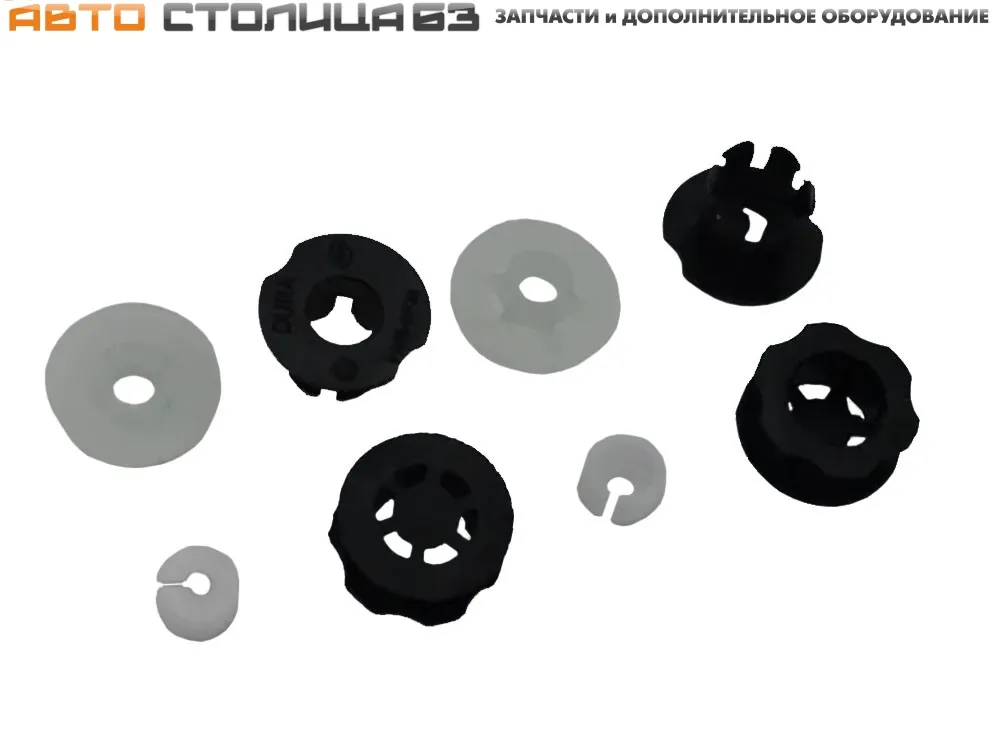 В комплекте 8 деталей (4 разных детали по 2 штуки каждой) для ремонта наконечников тросов КПП (ремкомплект рассчитан на 2 троса).