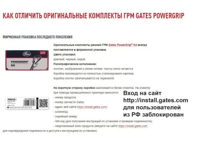 Подлинность комплектов проверяется на сайте компании Gates (вход для пользователей из РФ заблокирован). По вашему запросу мы предоставим сертификат на товар.