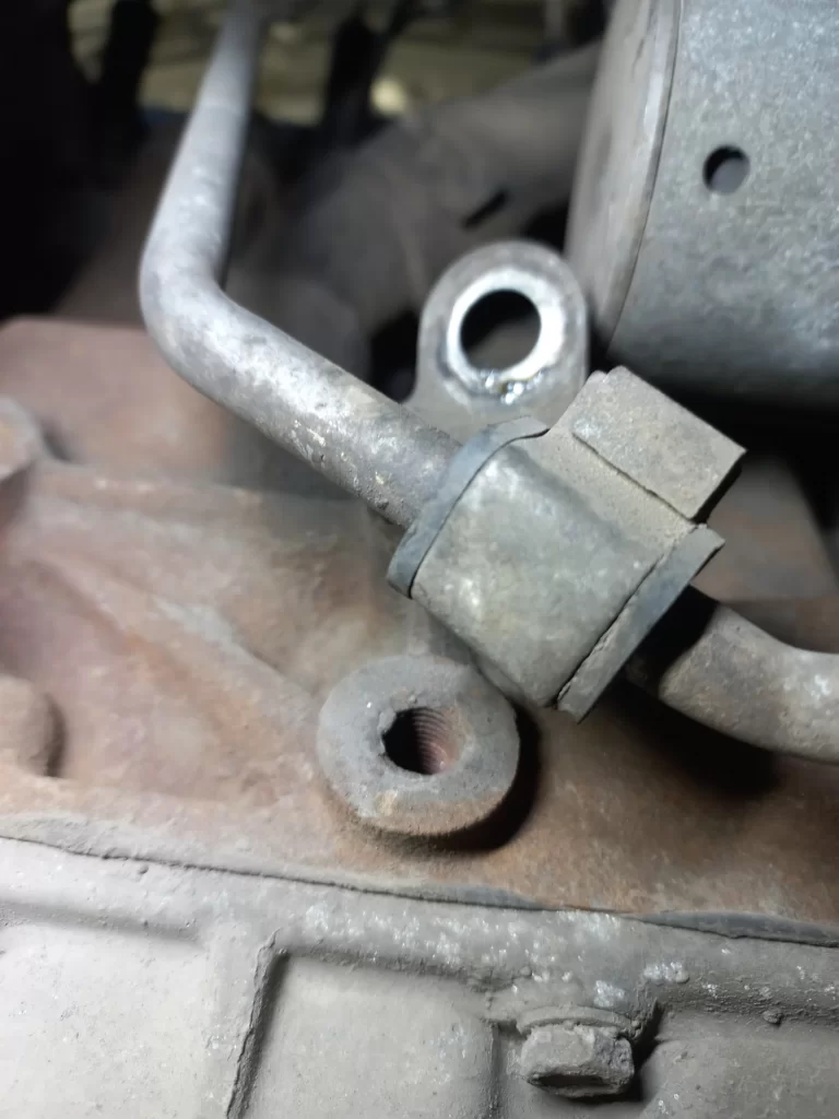 4. Руками, аккуратно, выгибаем трубку ГУР. Одеваем кронштейн крепления трубки ГУР к блоку цилиндров и ставим таким образом, чтобы кронштейн встал на верхний болт. Изгиб трубки сугубо в индивидуальном порядке. Гнуть страшно трубку, есть чувство, что лопнет или, что то произойдет, но если все делать аккуратно, то все гуд.