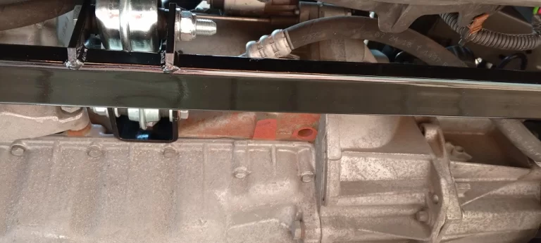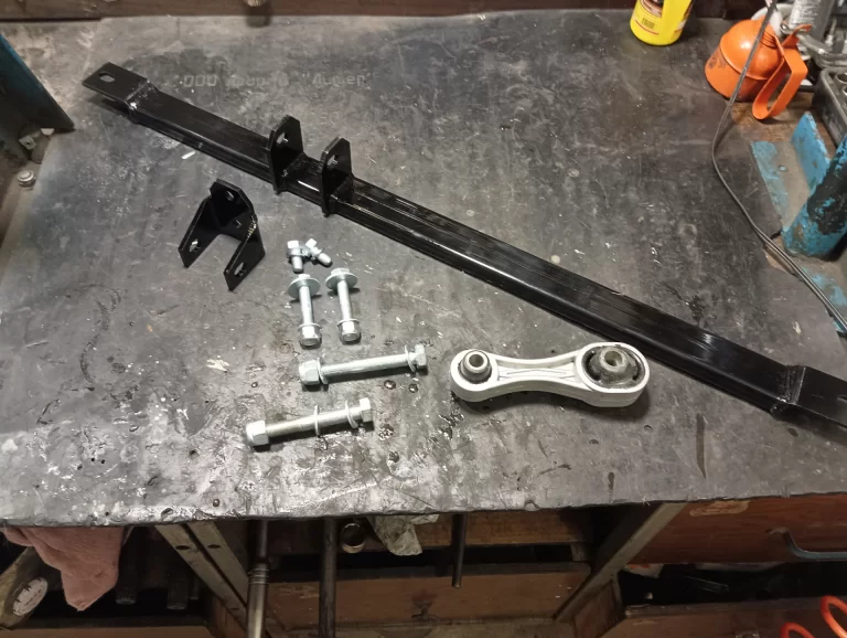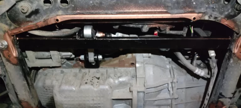 5. Ставим перекладину. В подрамнике есть технологические отверстия. Для чего они там просверлены изначально неизвестно, может для жёсткости "профильной" конструкции подрамника. Крепиться болтами М12. шаг не помню.