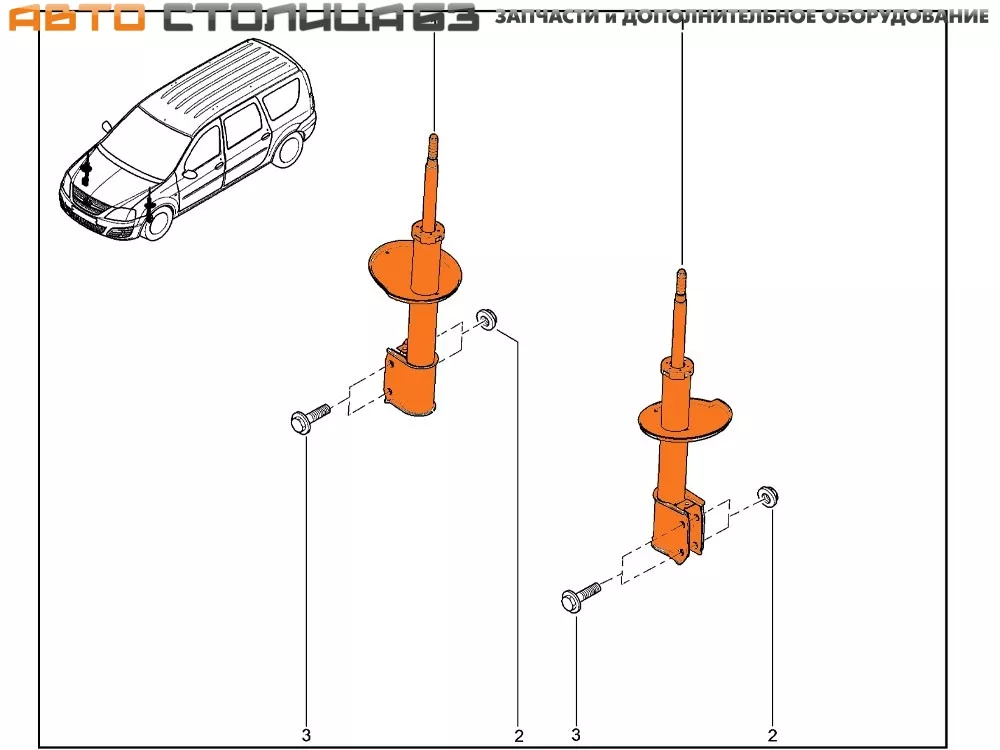 Амортизатор передней подвески для автомобилей Лада Ларгус (кроме фургон и Кросс). Стоимость указана за 1 амортизатор. Левый и правый амортизаторы одинаковые. Также применим для Logan (2004 - 2015), Sandero.