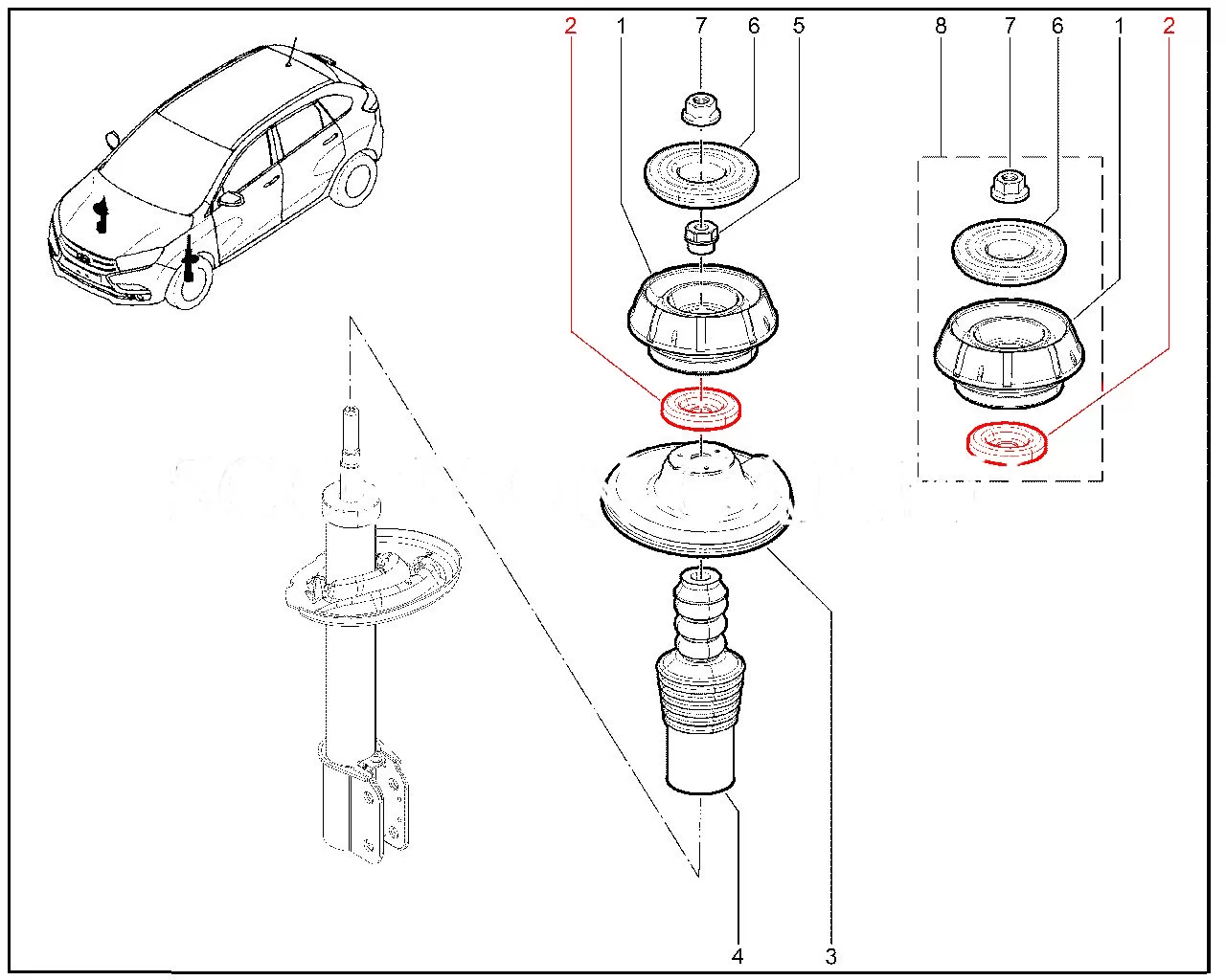 Штатный подшипник верхней опоры телескопической стойки для Лада Ларгус и Иксрей.
