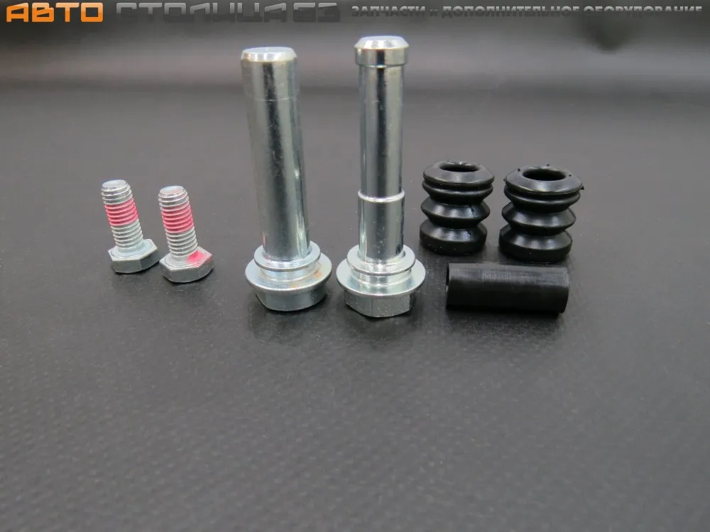 В комплекте 2 пальца суппорта, 2 пыльника, 2 болта крепления, 1 втулка суппорта, смазка.