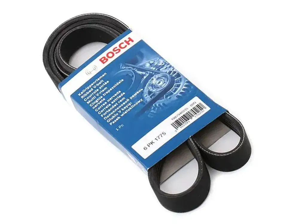 Ремень генератора и кондиционера BOSCH для автомобилей Лада Ларгус с двигателем ВАЗ 11189, гидроусилителем руля и кондиционером (климатической установкой).