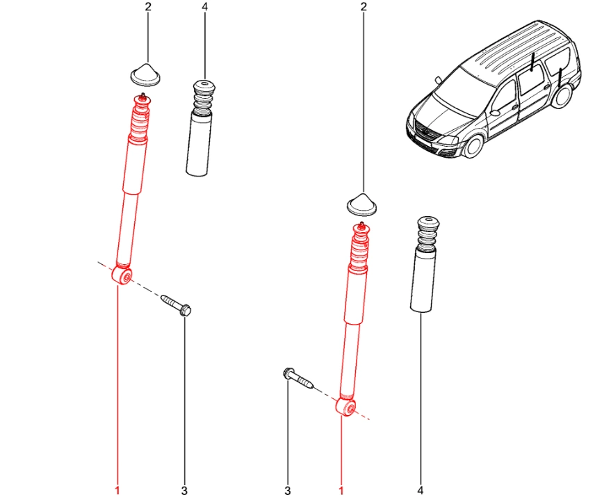Штатный оригинальный амортизатор задней подвески в сборе для Lada Largus фургон.