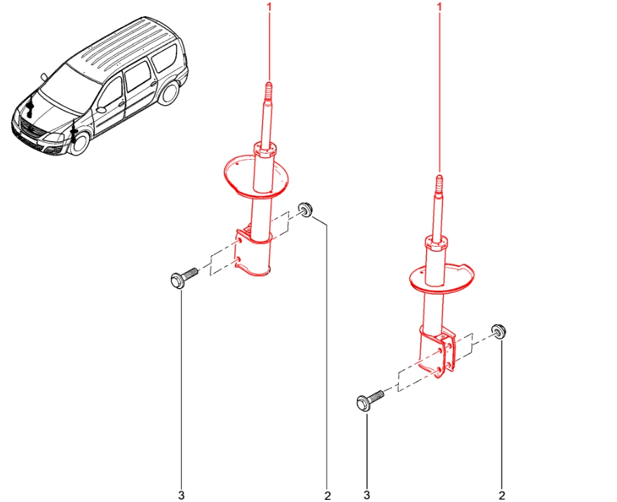 Штатная оригинальная стойка телескопическая передней подвески в сборе для Lada Largus Cross.