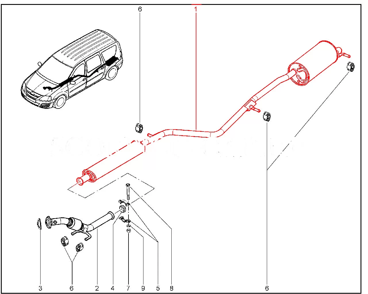 Штатный оригинальный резонатор нержавеющий двигателя ВАЗ 11189, 21129 для Lada Largus.