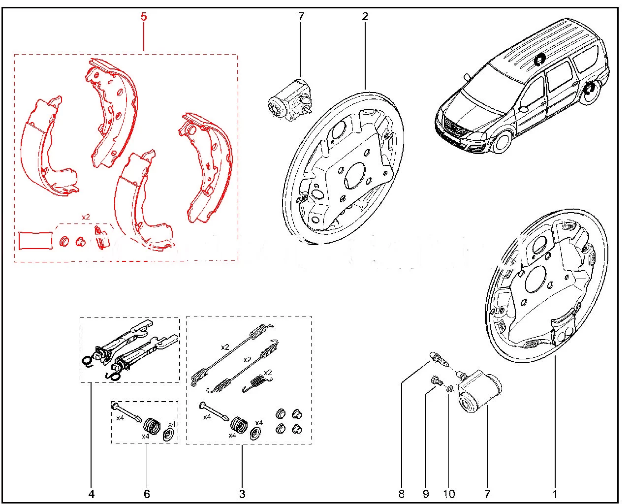 Штатные оригинальные колодки тормозные задние барабанные для Lada Largus FL.