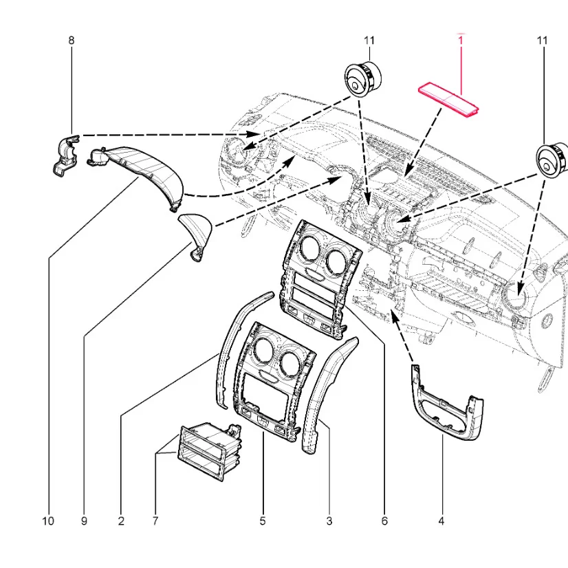 Штатная оригинальная накладка центральная панели приборов для Lada Largus FL.