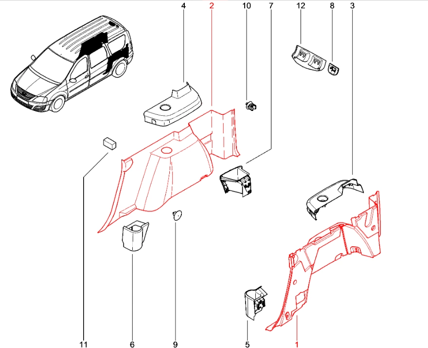 Штатная оригинальная обивка арки и боковины для Lada Largus.