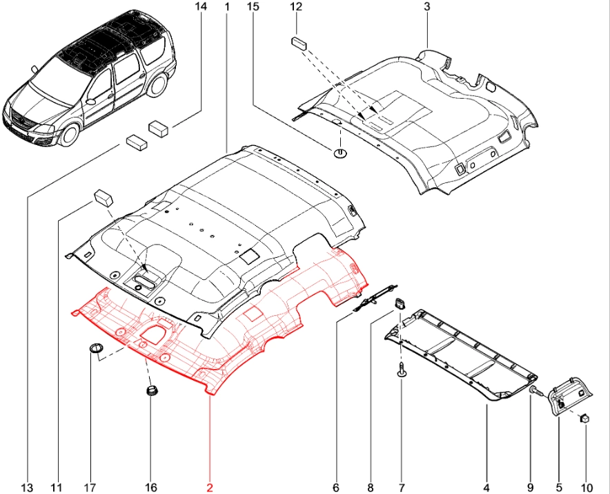 Штатная оригинальная передняя обивка крыши 8450091409 для Lada Largus FL.