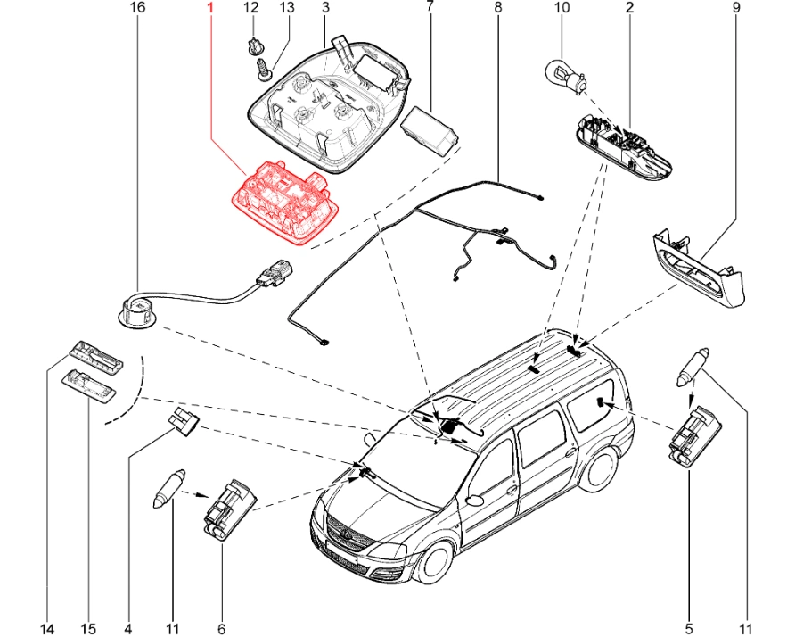 Штатный оригинальный плафон освещения салона потолочный для Lada Largus FL.