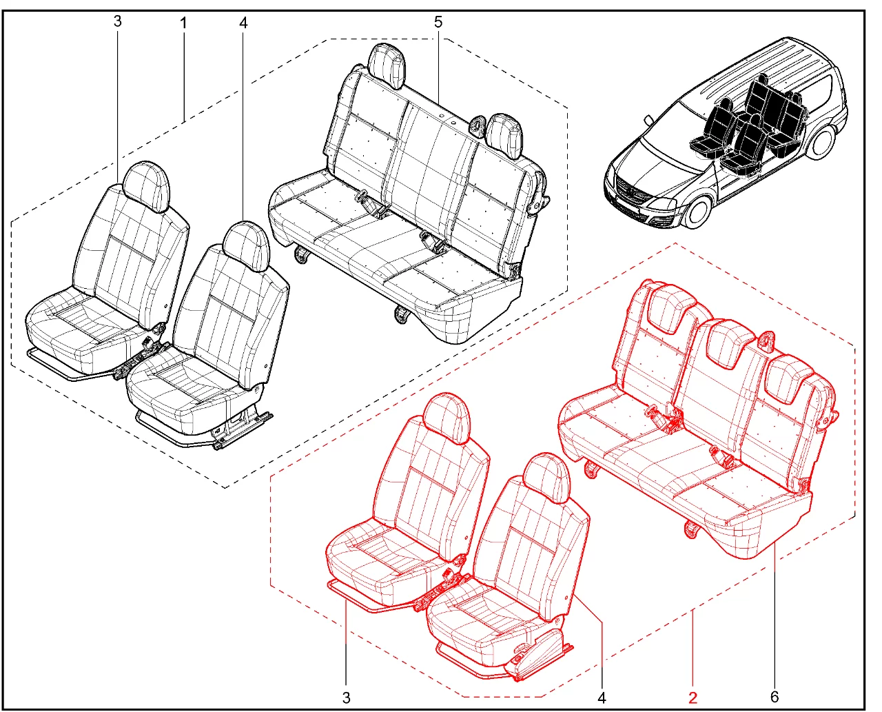 Штатный оригинальный комплект сидений Cross Grey для Lada Largus.