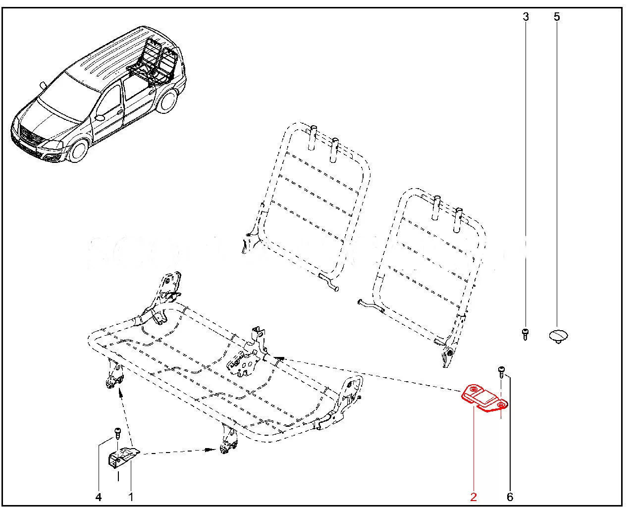 Штатная оригинальная скоба подушки сиденья 3го ряда для Lada Largus.