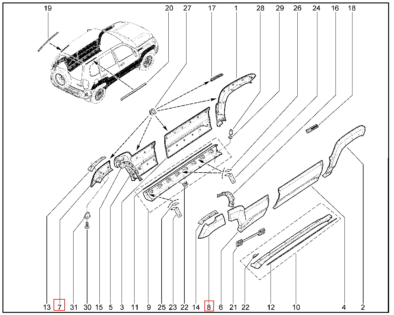 Молдинг наружный заднего крыла Лада Нива Тревел.