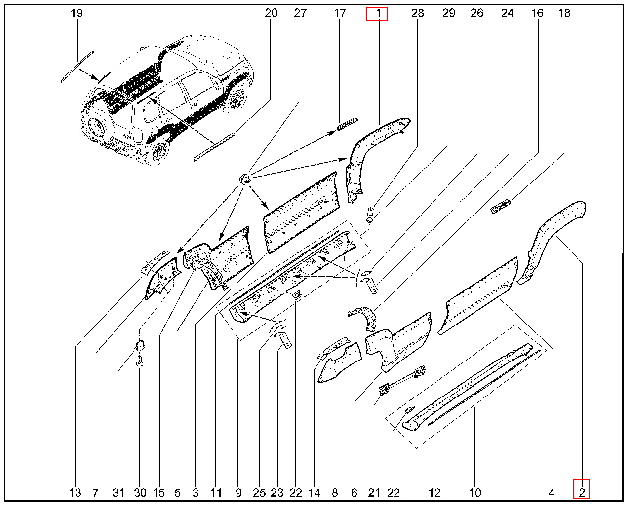 Молдинг наружный переднего крыла Лада Нива Тревел