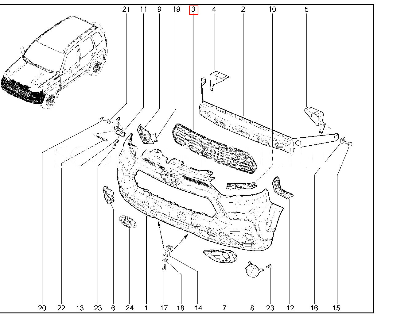Решетка бампера переднего нижняя ЛАДА Нива Тревел.