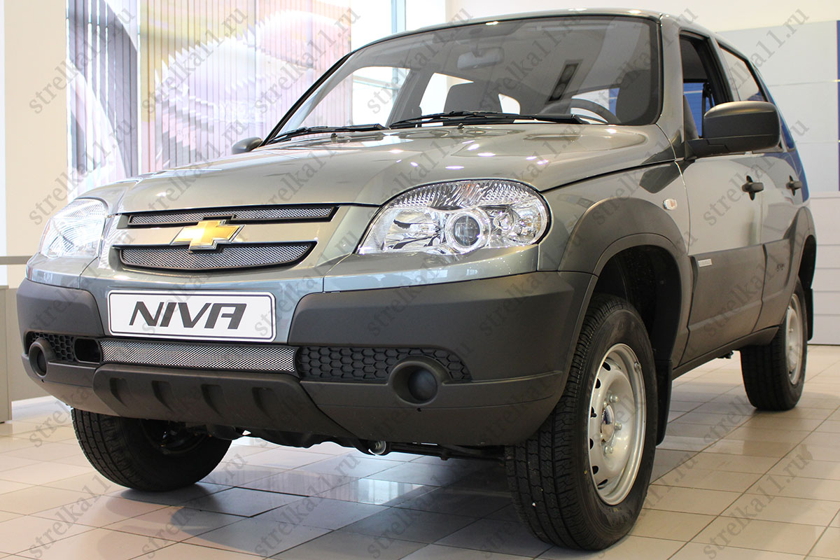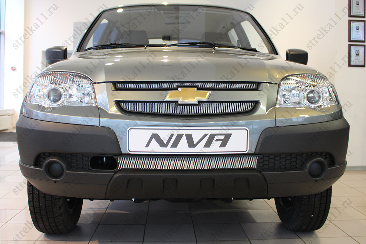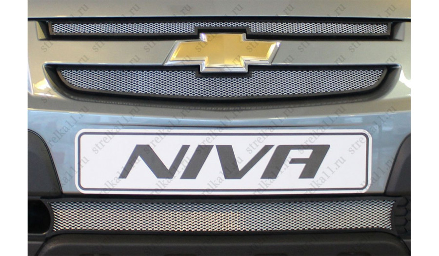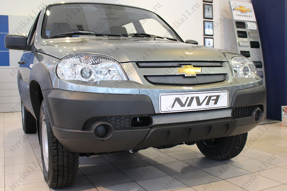 Защита радиатора для Шевроле Нива I рестайлинг (комплектации L /LC/ GL/LE/LE) 2009-2020. Не подойдет для комплектаций GLC\GLS. Цвет матовый хром, 3 детали в комплекте.