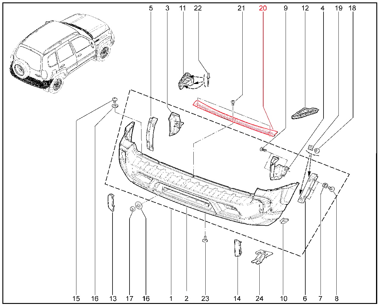Усилитель крепления заднего бампера для Лада Нива Тревел и Шеви Нива.