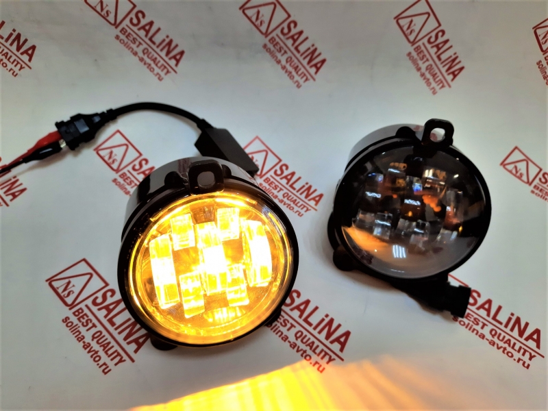 Диодные ПТФ 7 линз 60w, двухрежимные (белый 6000К/ желтый 3000К) на Лада Приора, Шевроле Нива после 2009 г. в. (рестайлинг).