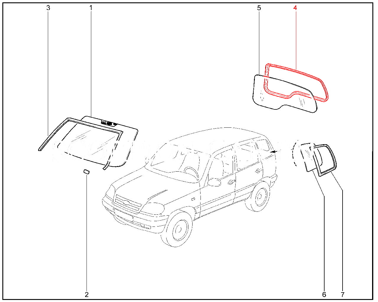 Уплотнитель окна двери задка для Лада Нива Тревел.