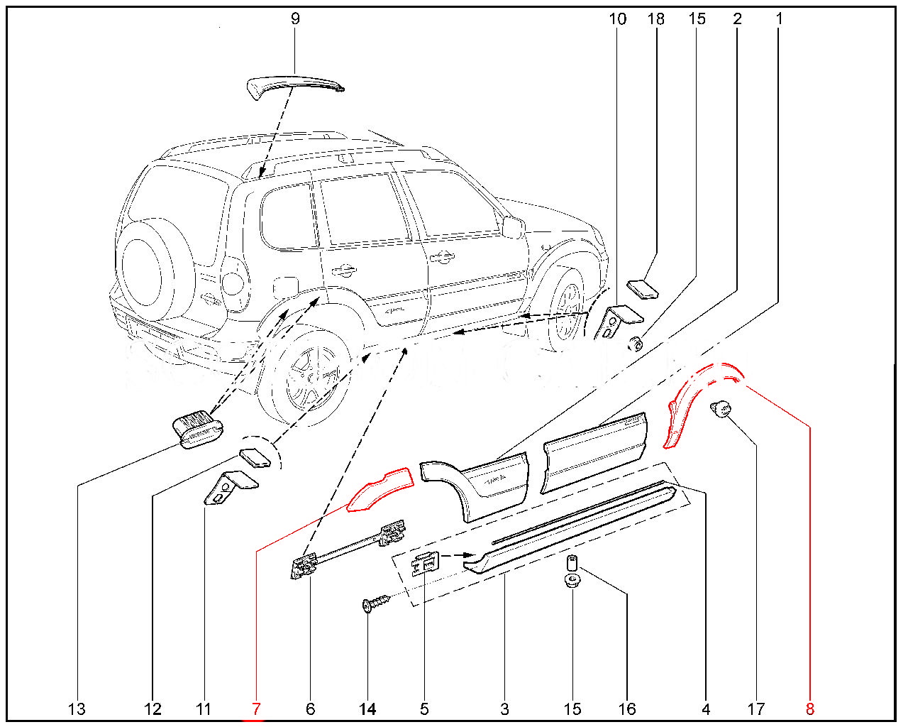 Штатный пластиковый молдинг крыла для Шеви Нива, Лада Нива.