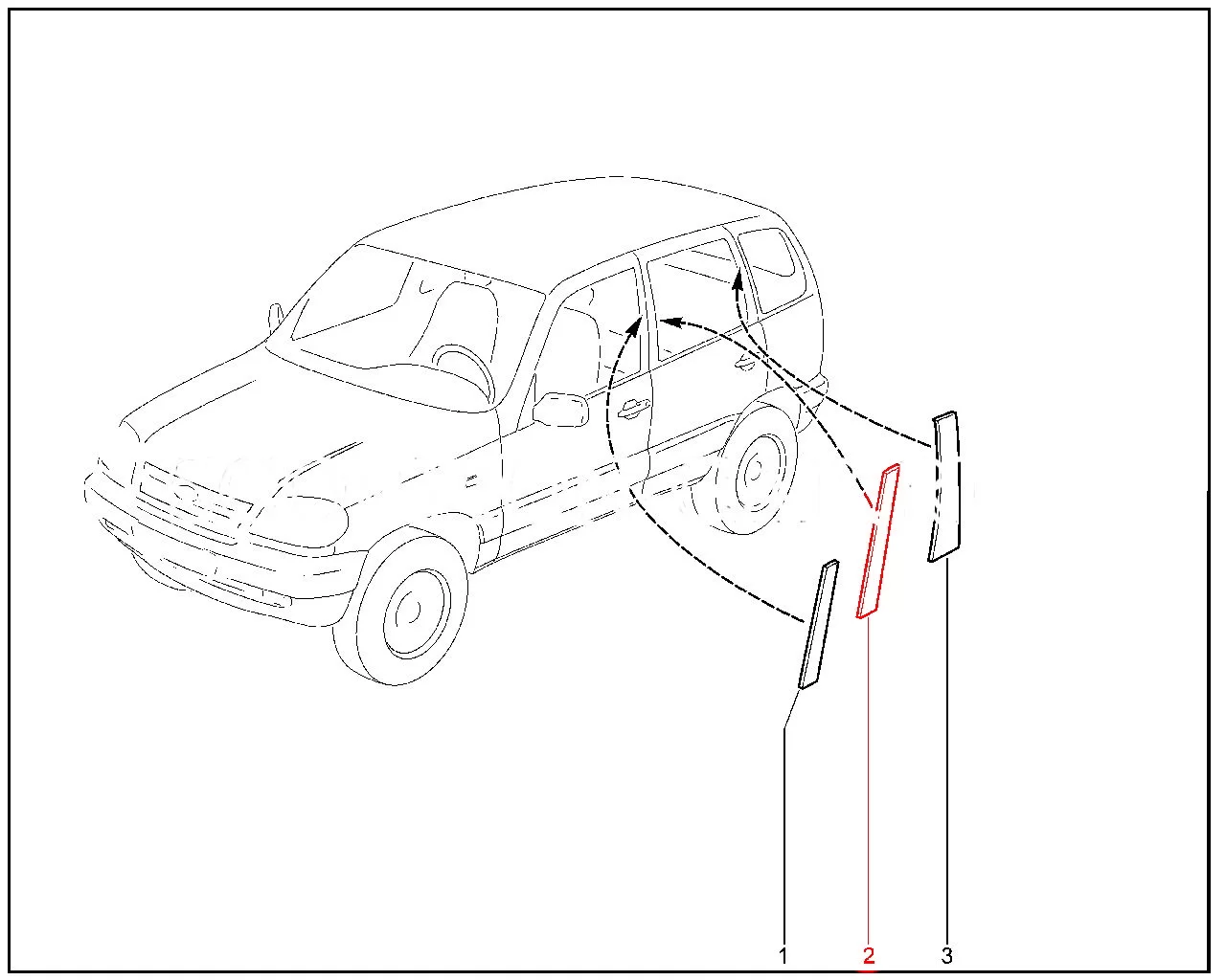 Штатная накладка передней стойки задней двери для Лада Нива Тревел и Шеви Нива.