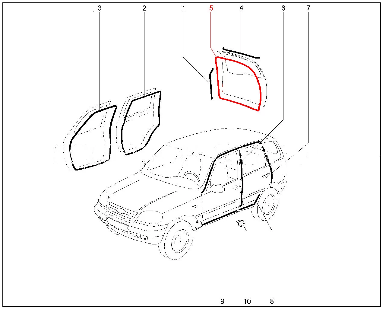 Штатный уплотнитель проема двери задка для Лада Нива Тревел и Шеви Нива.