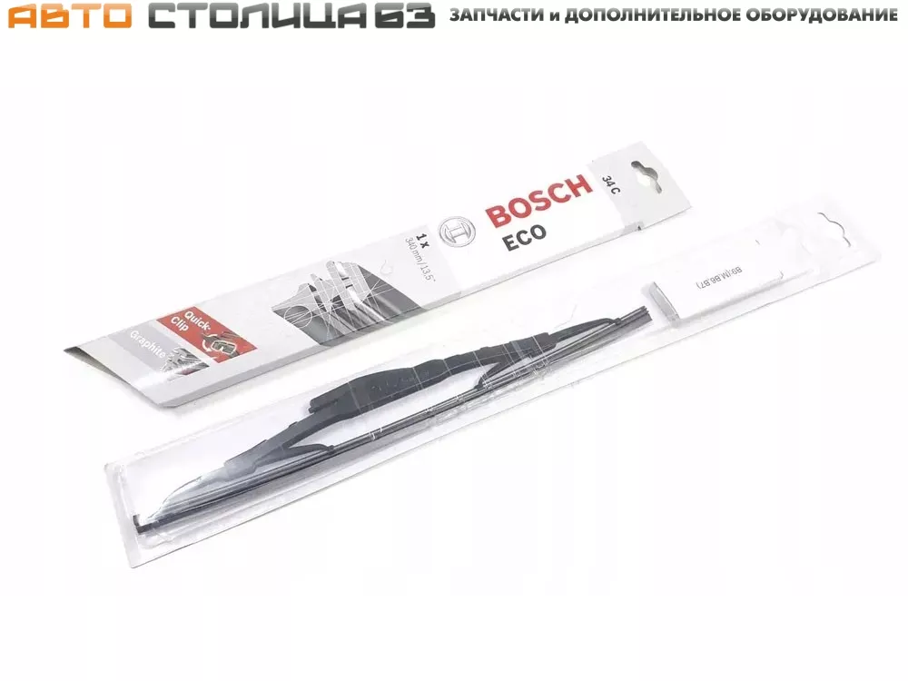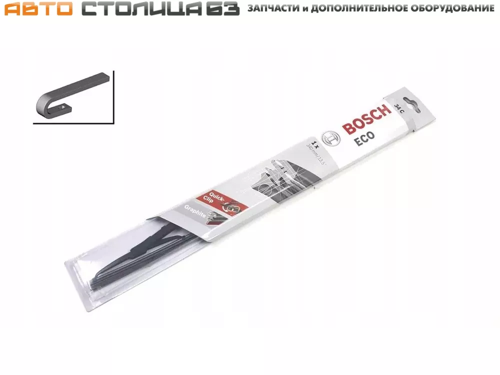 Серия стеклоочистителей Bosch ECO относится к экономичному сегменту и предназначена для автомобилей с креплением крючок без специфичных требований (таких как спойлер, форсунки стеклоомывателя или изогнутые щетки). Щетки Bosch ECO имеют цельнометаллическую конструкцию и удобный адаптер Quick-Clip для быстрой установки.