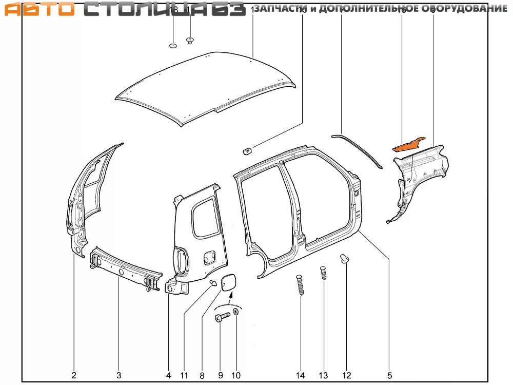 Оригинальный верхний кронштейн крепления переднего правого крыла для автомобилей Нива Трэвел.