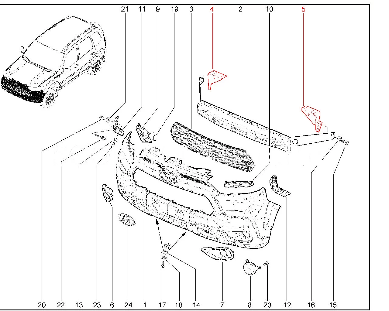 Кронштейн переднего бампера боковой в сборе для Лада Нива Тревел.