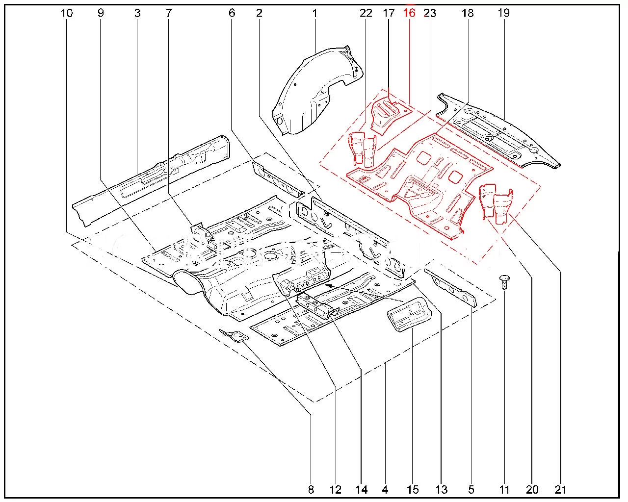 Штатная оригинальная пaнель пола средняя в сборе (катафорез) для Lada Niva Travel, Chevrolet.