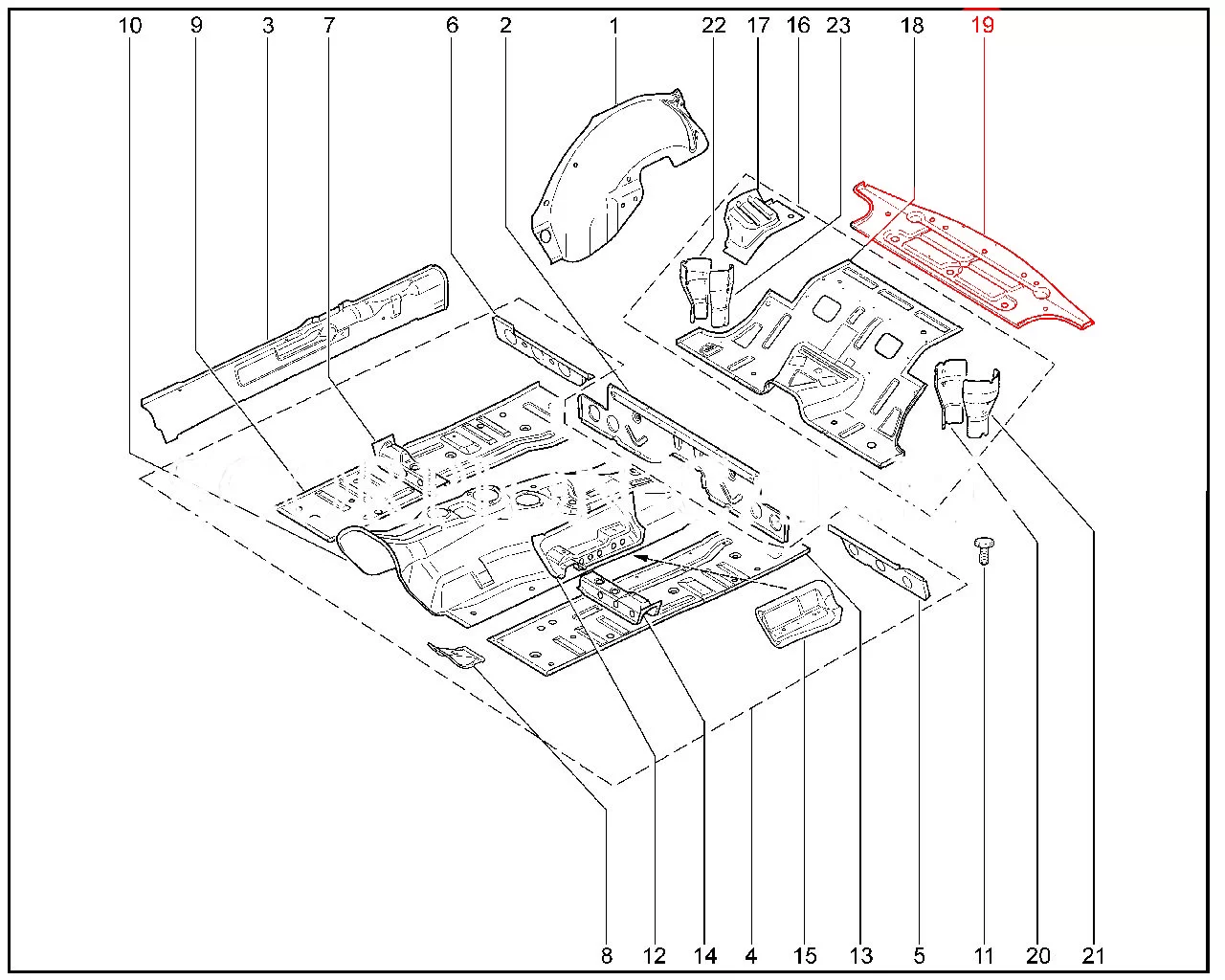 Штатная оригинальная панель пола задняя в сборе (катафорез) для Lada Niva Travel, Chevrolet.