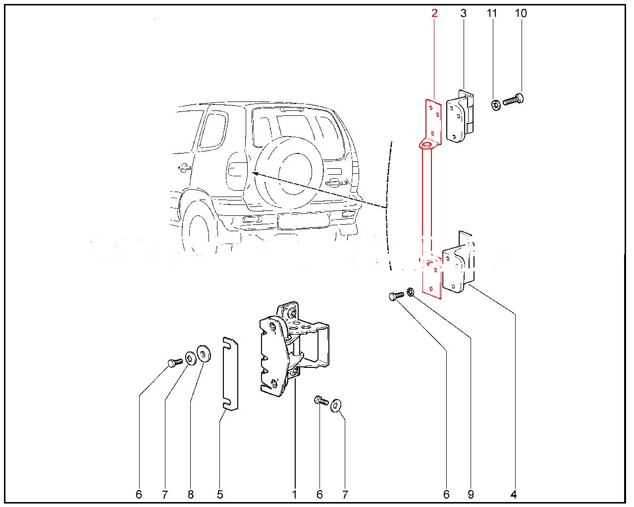 Штатный оригинальный соединитель петель двери задка в сборе для Lada Niva Travel, Chevrolet.