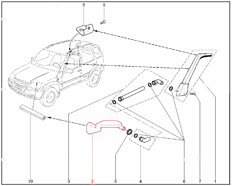 Отвод корпуса воздушного фильтра под шноркель для Лада Нива Тревел и Шеви Нива.