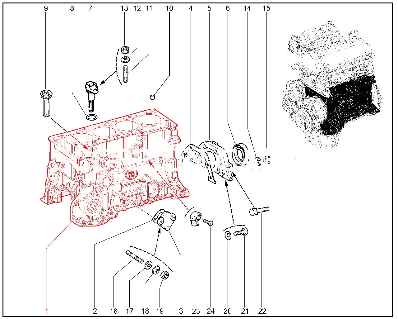 Блок цилиндров с крышками коренных подшипников, втулками, заглушками и штифтами в сборе для Лада Нива, Нива Шеви, Нива Тревел.