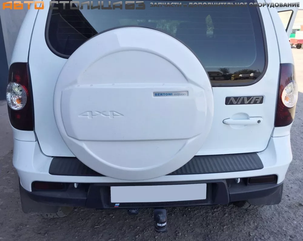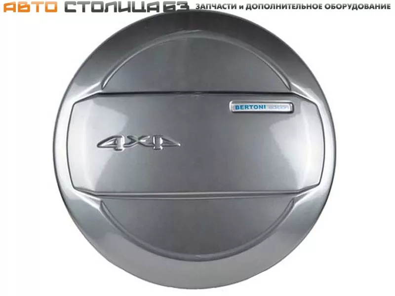 Чехол запасного колеса для автомобиля Шевроле Нива, окрашенный в цвет автомобиля. На колпаке установлен шильдик Bertoni Edition.