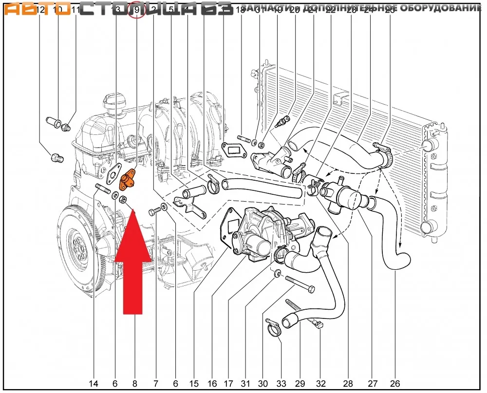 Тройник ГБЦ (труба подводящая радиатора отопителя) для автомобилей Шевроле Нива и Нива Трэвел.