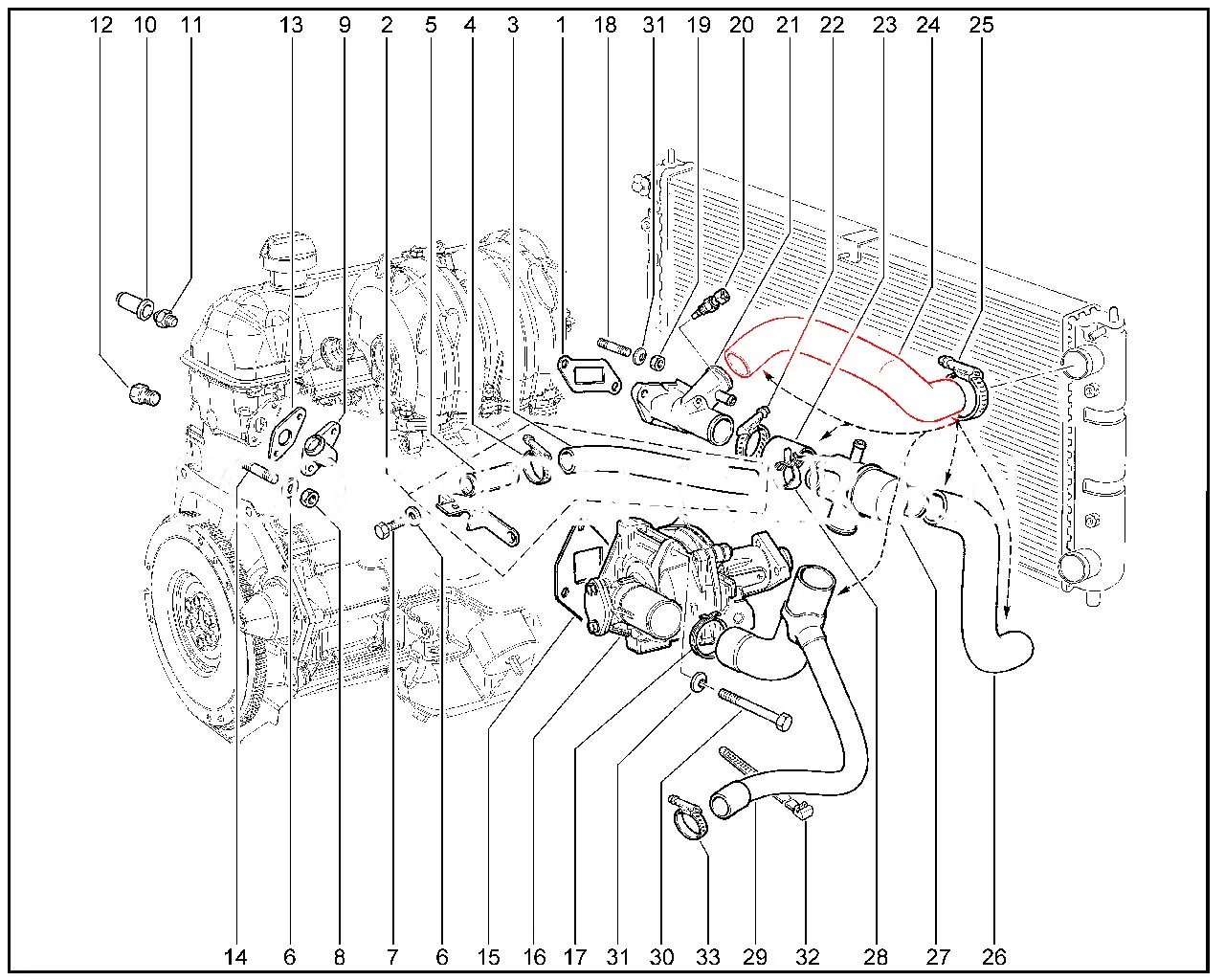 Штатный шланг подводящий радиатора верхний для Лада Нива Тревел и Шеви Нива.