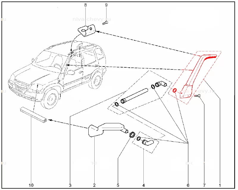 Штатный оригинальный воздухозаборник наружный (шноркель) SP+ для Lada Niva Travel, Chevrolet.