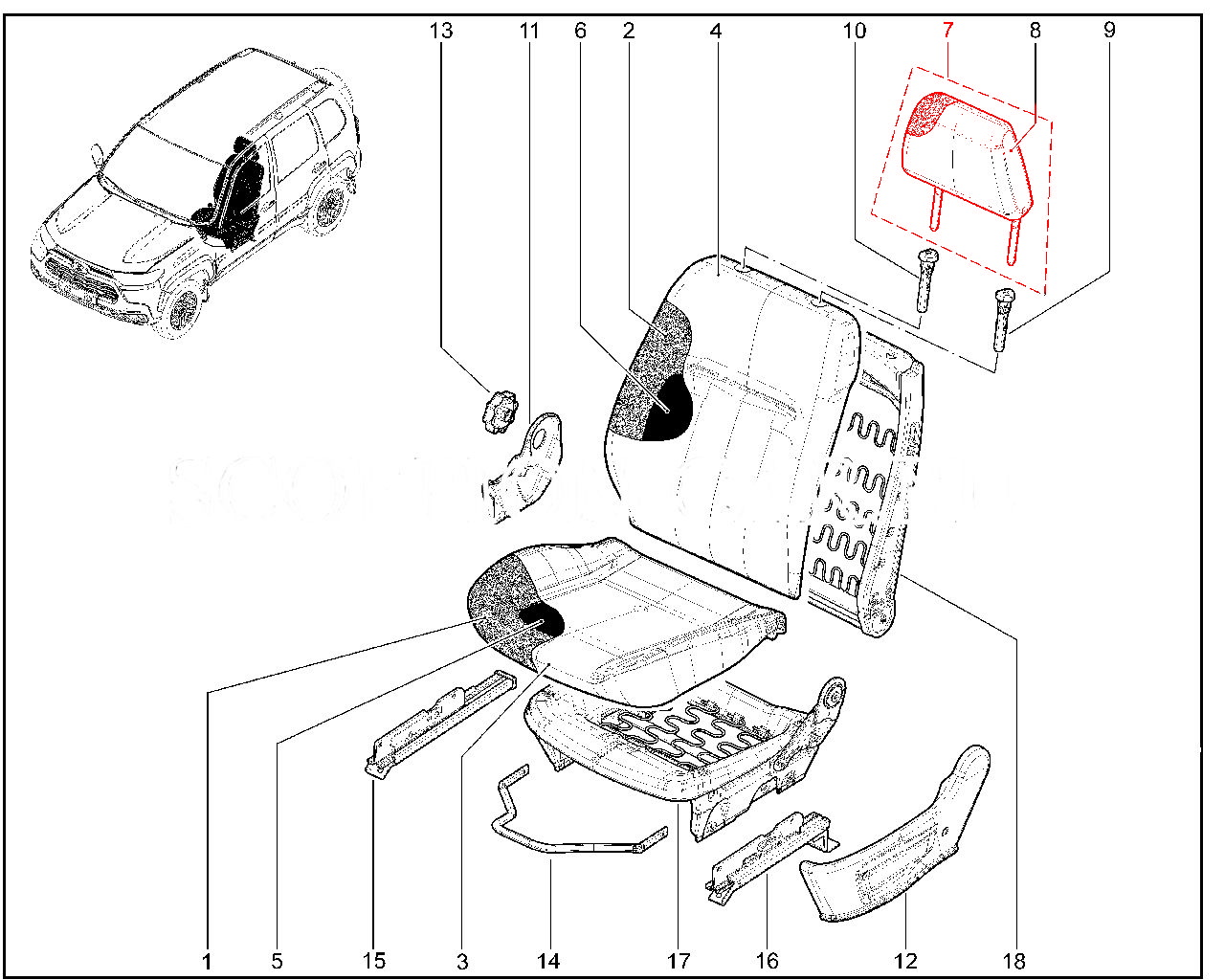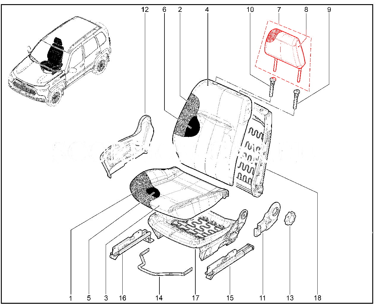 Подголовник переднего сидения Norma Black в сборе с обивкой для Лада Нива Тревел Блэк.