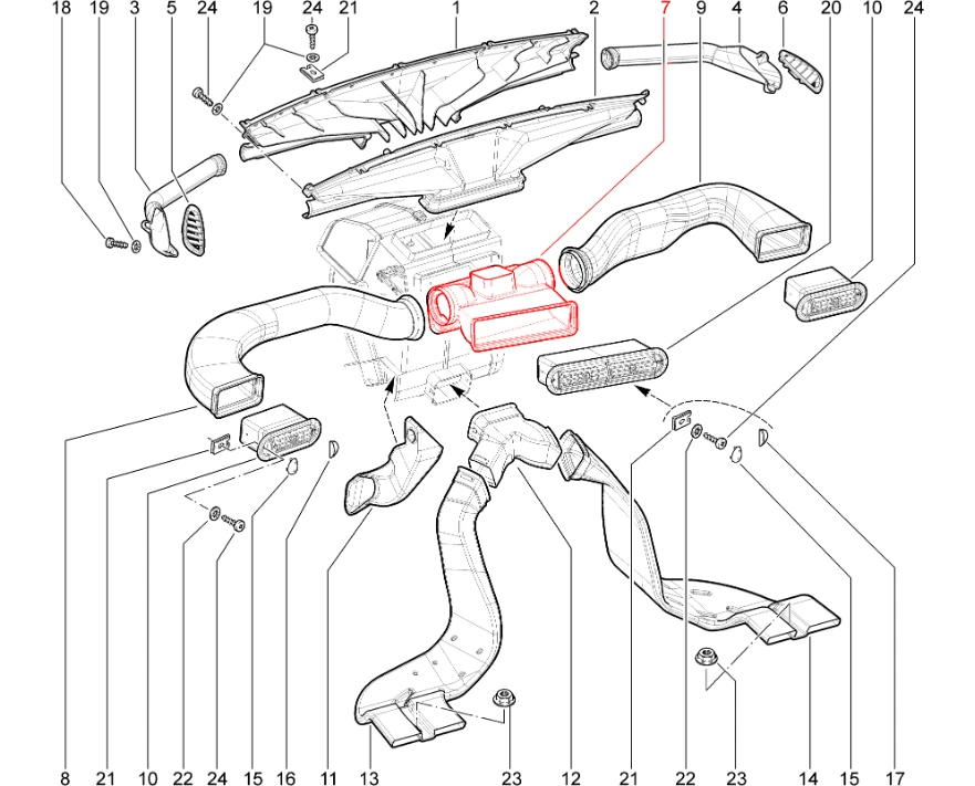 Штатный оригинальный корпус промежуточный центрального сопла вентиляции кузова для Lada Niva Travel, Chevrolet.